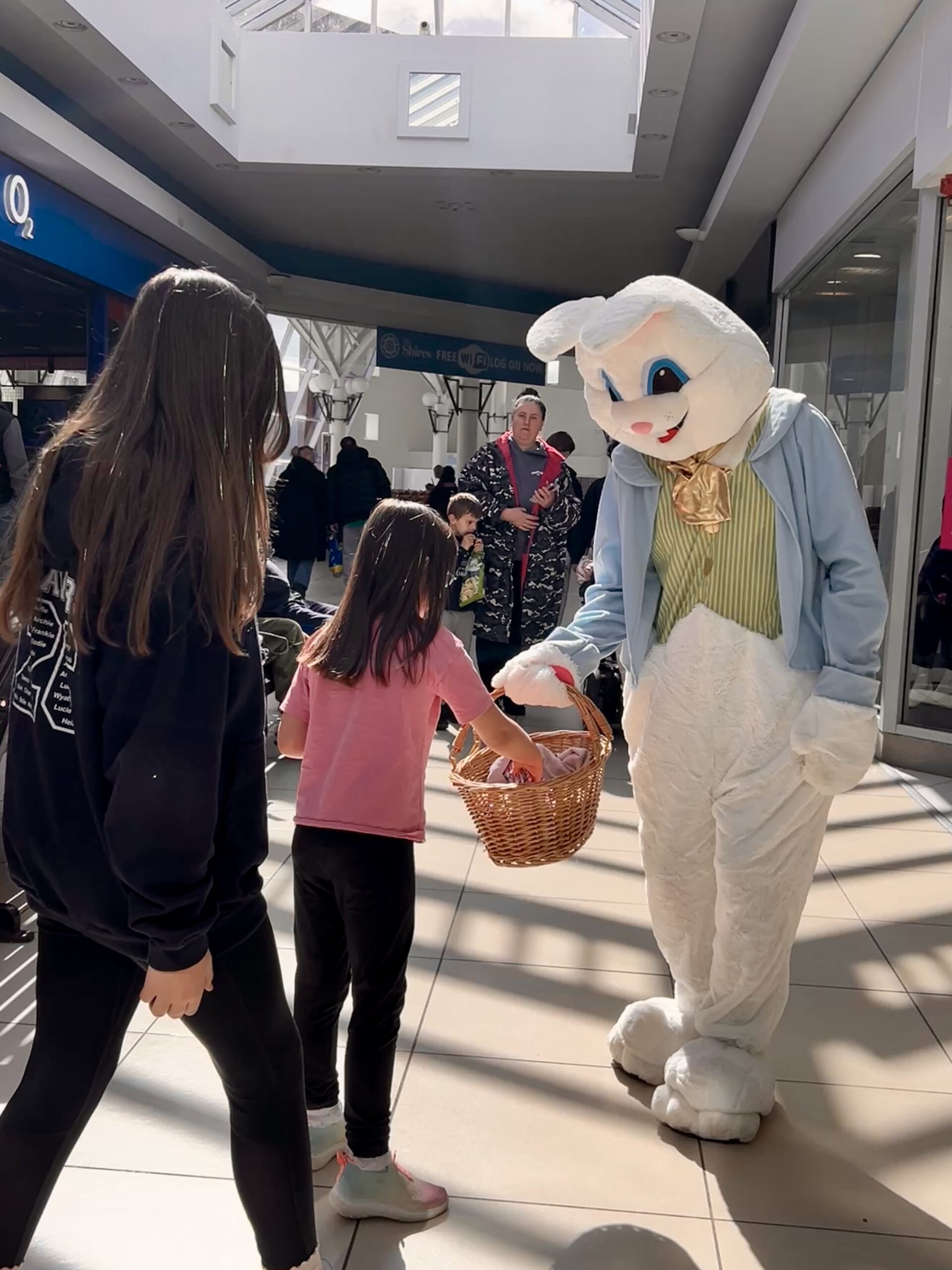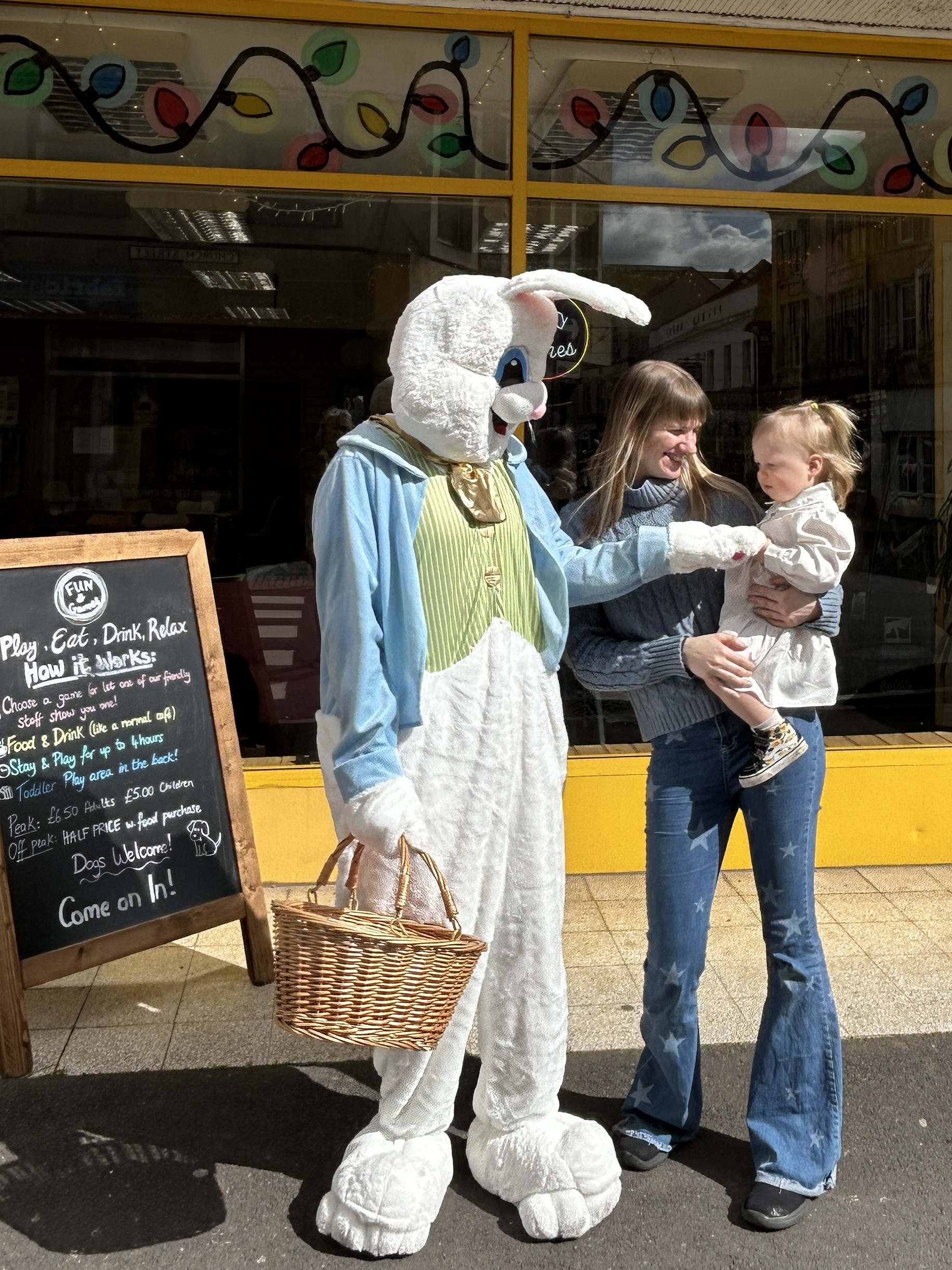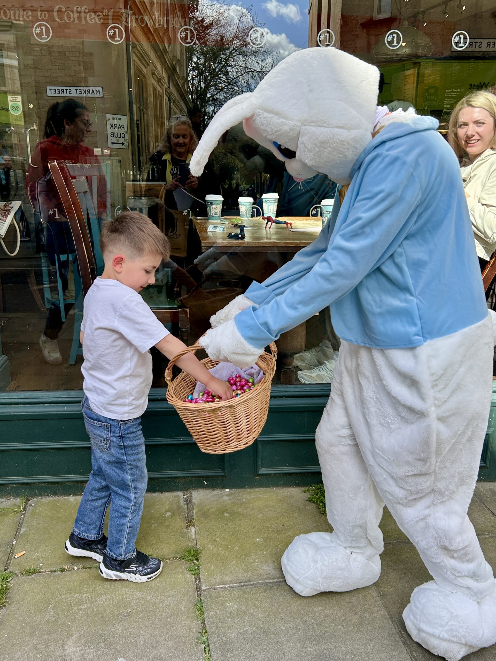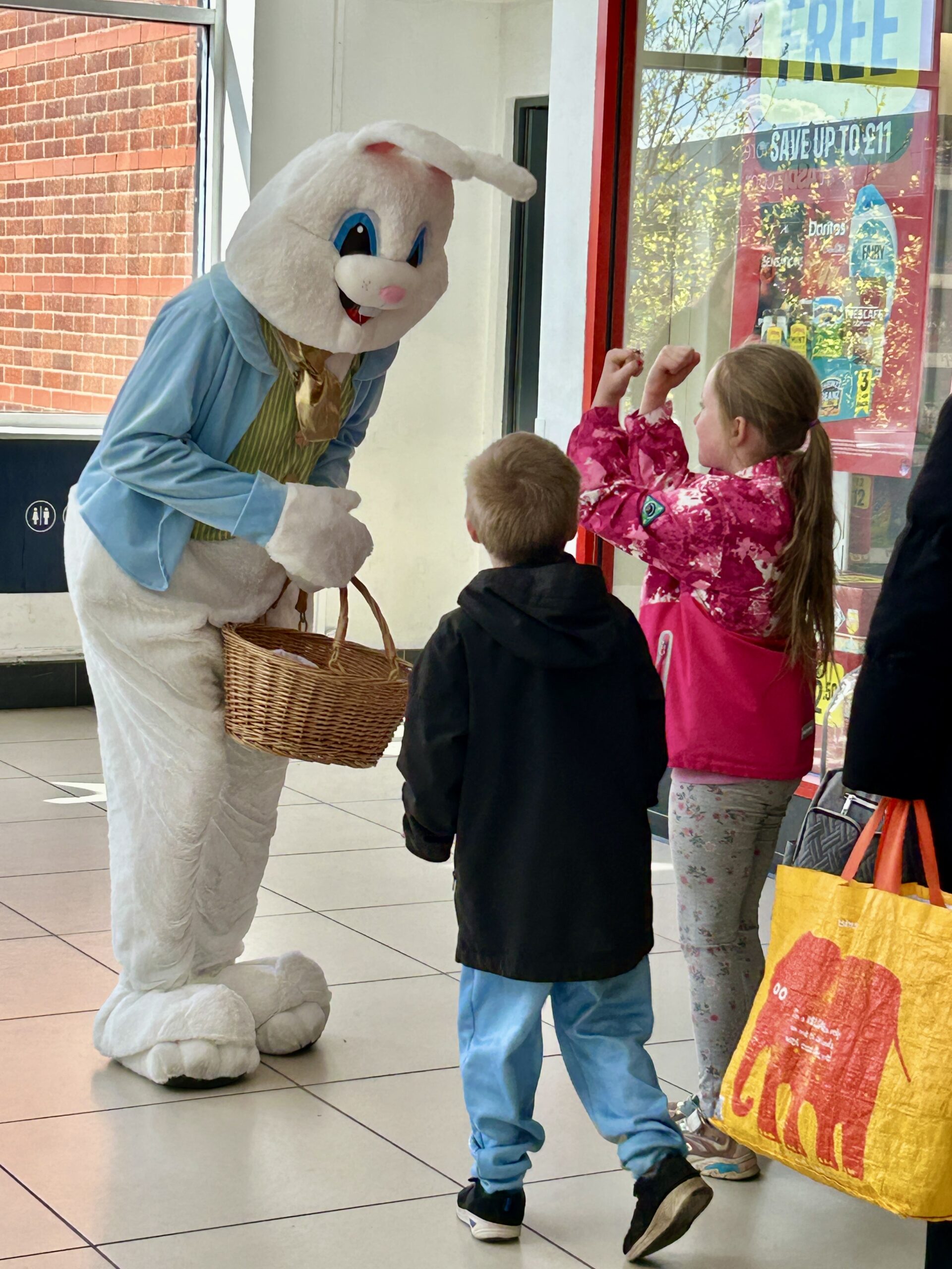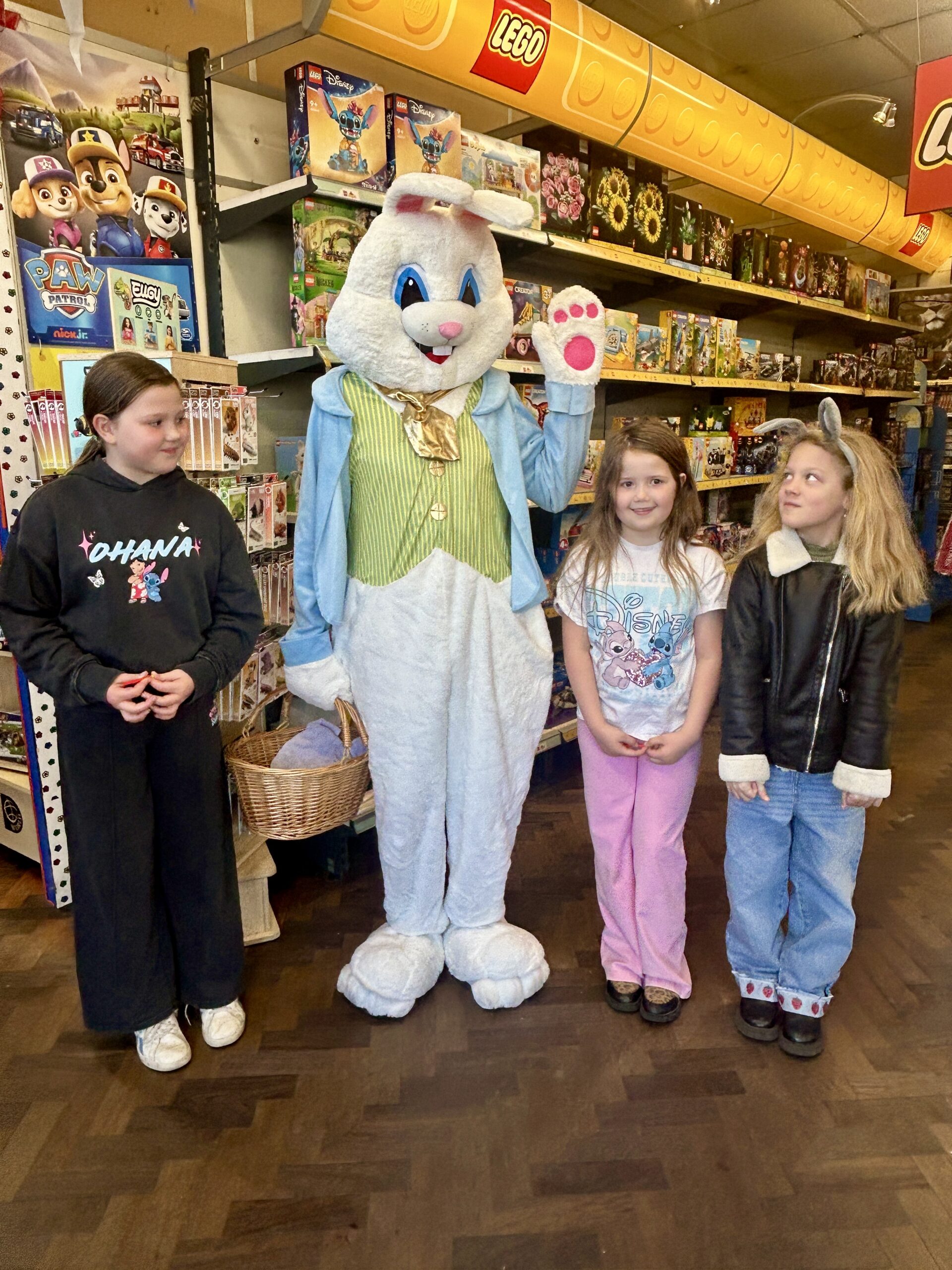 Shoppers of all ages were delighted to see the Easter bunny wandering through town, posing for photos and giving out mini-chocolate Easter eggs.
