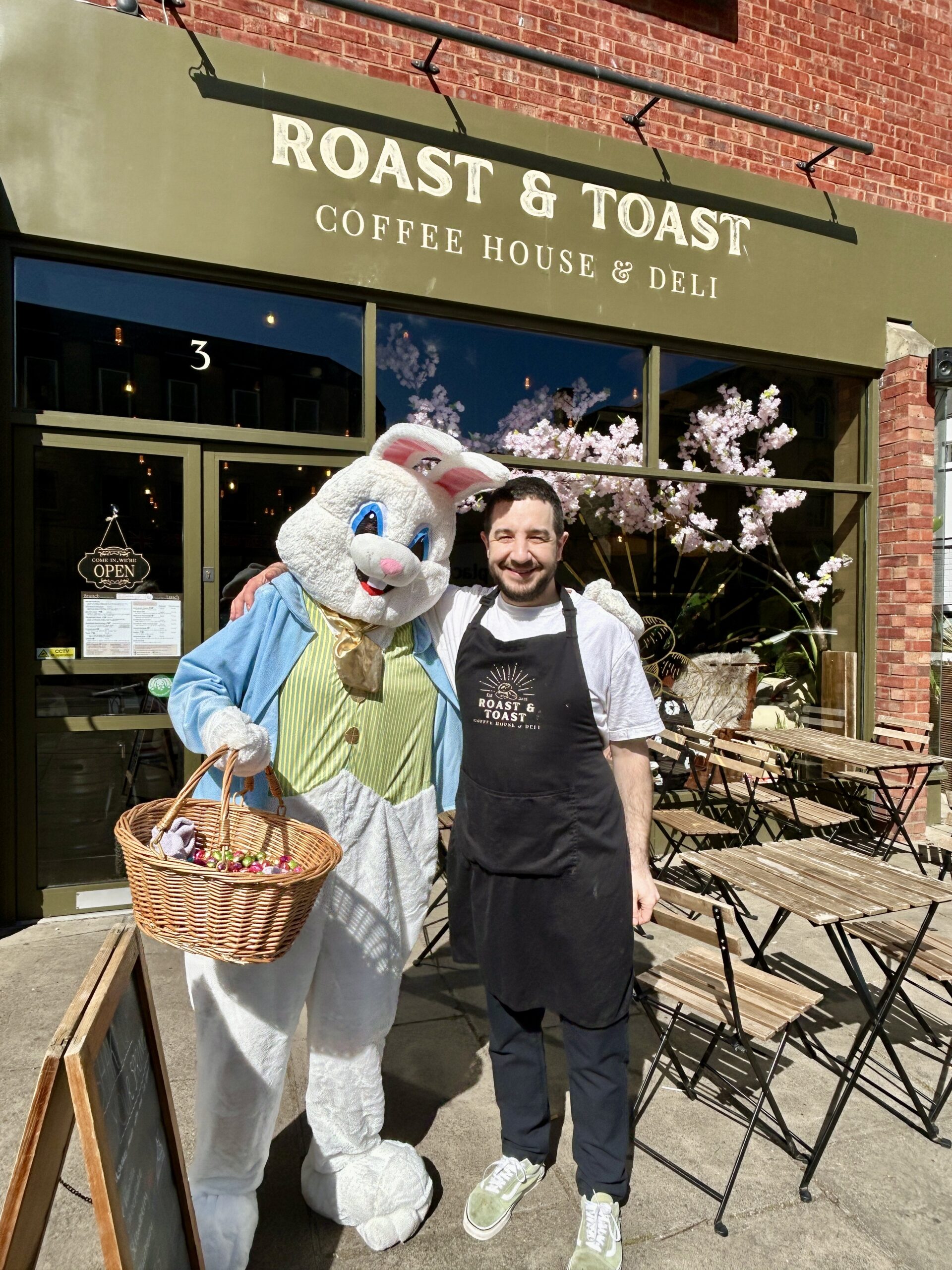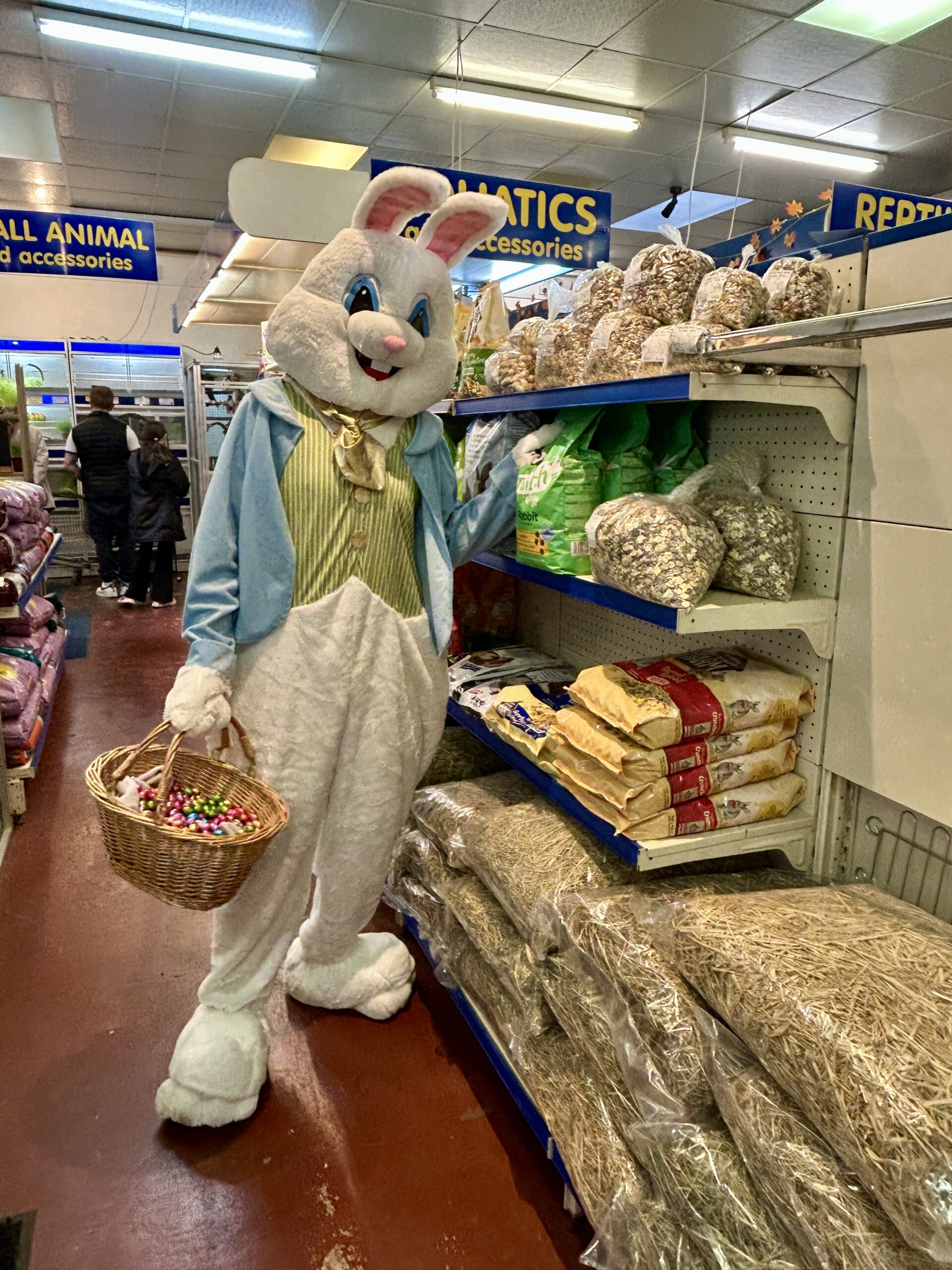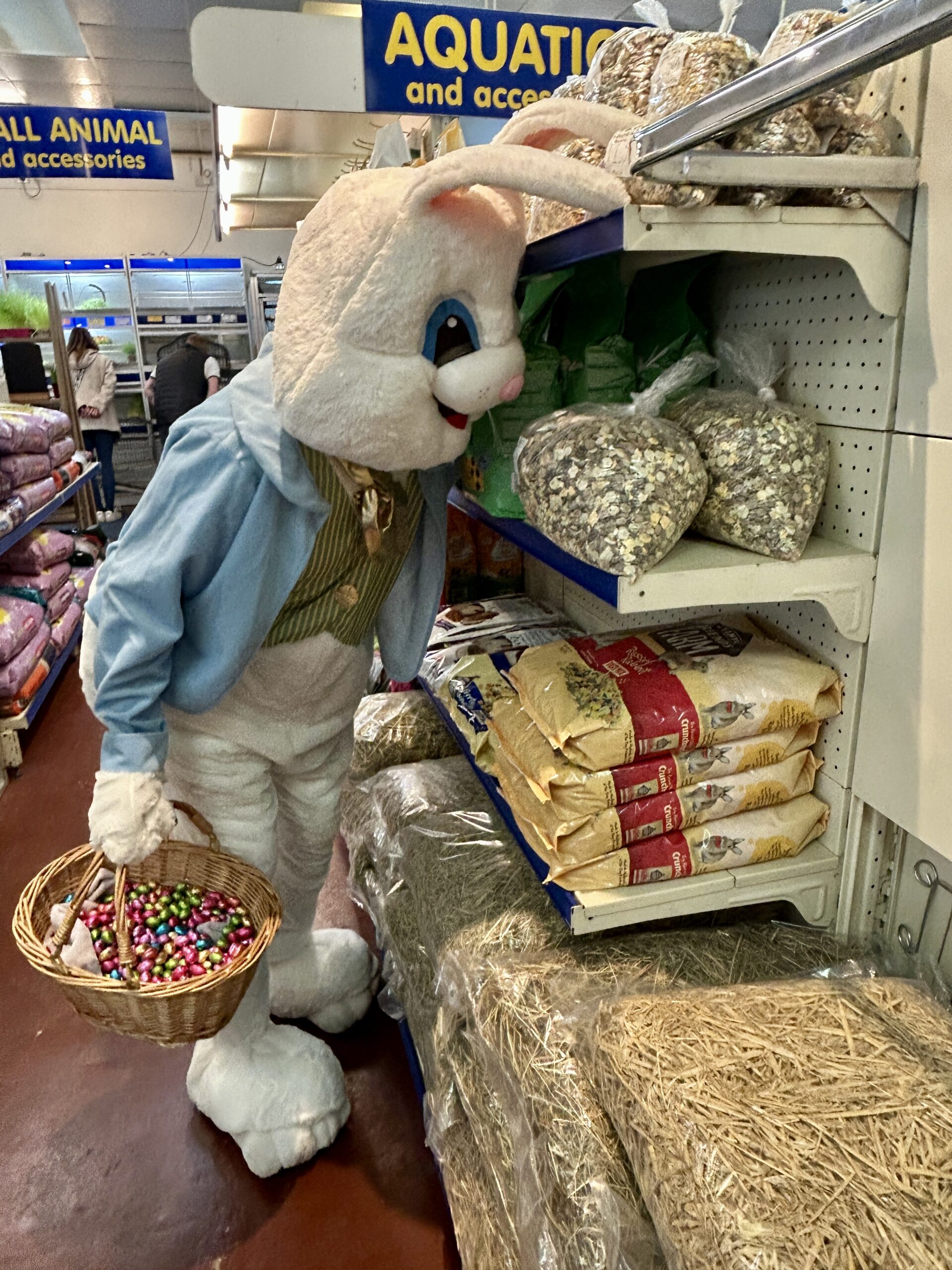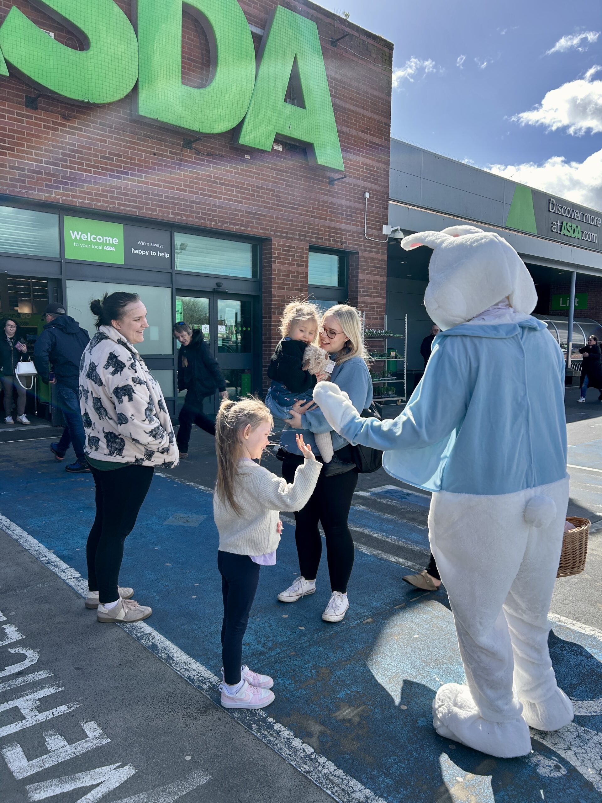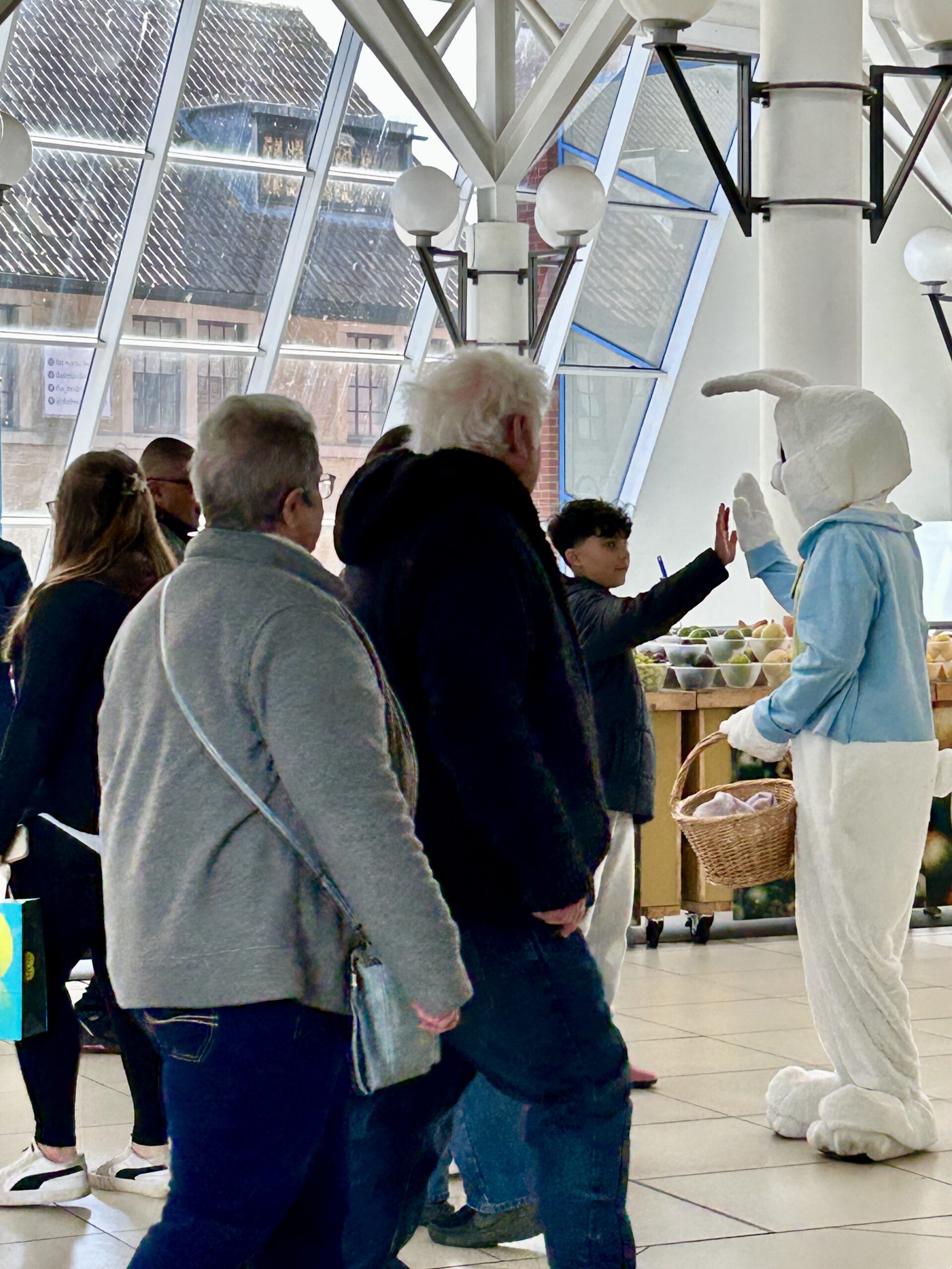 Shoppers of all ages were delighted to see the Easter bunny wandering through town, posing for photos and giving out mini-chocolate Easter eggs.