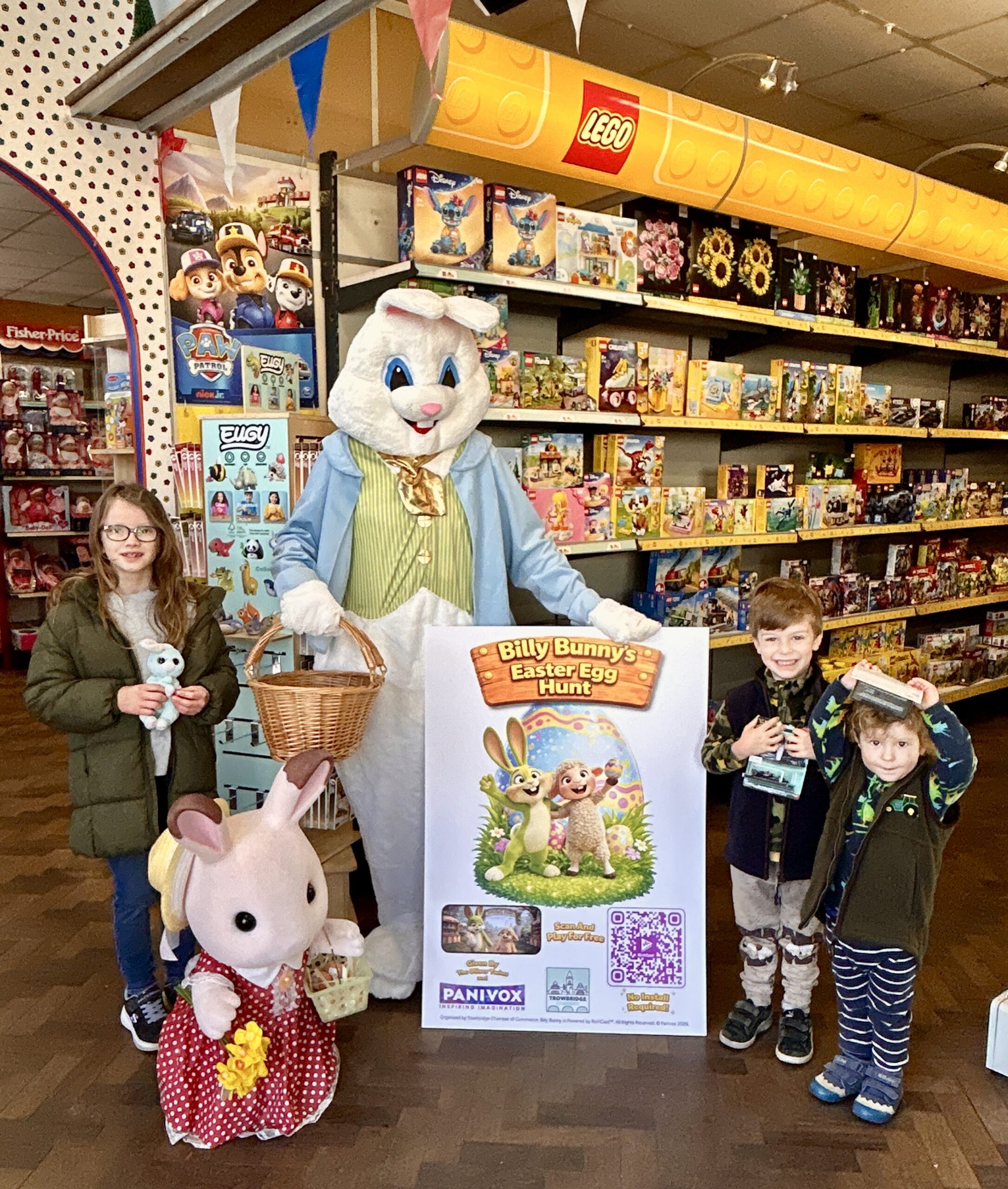 The Toy Shop has Bree Easter Bunny trail stickers and the second location has free mini Easter eggs to give children on the trail, while stocks last!