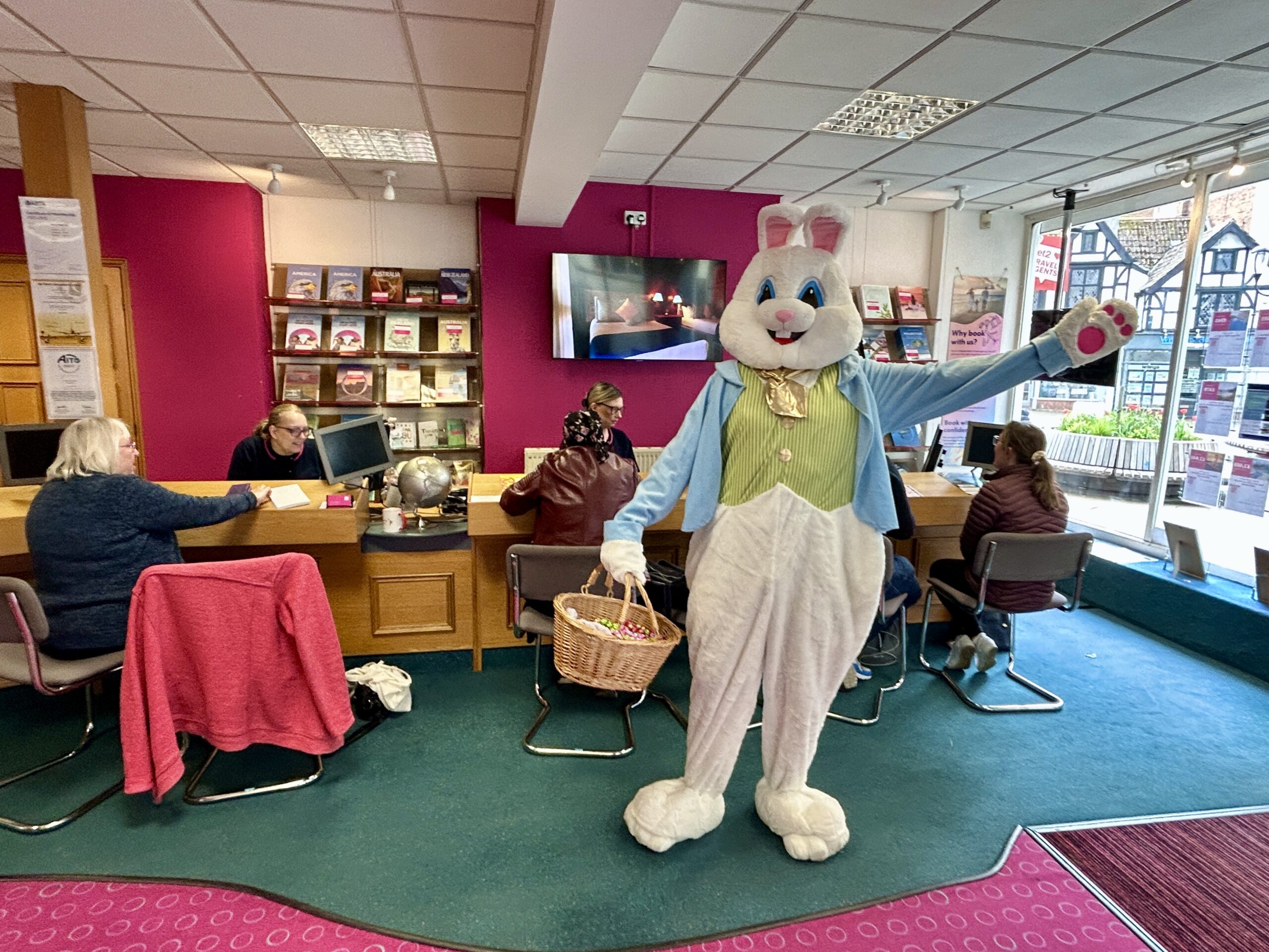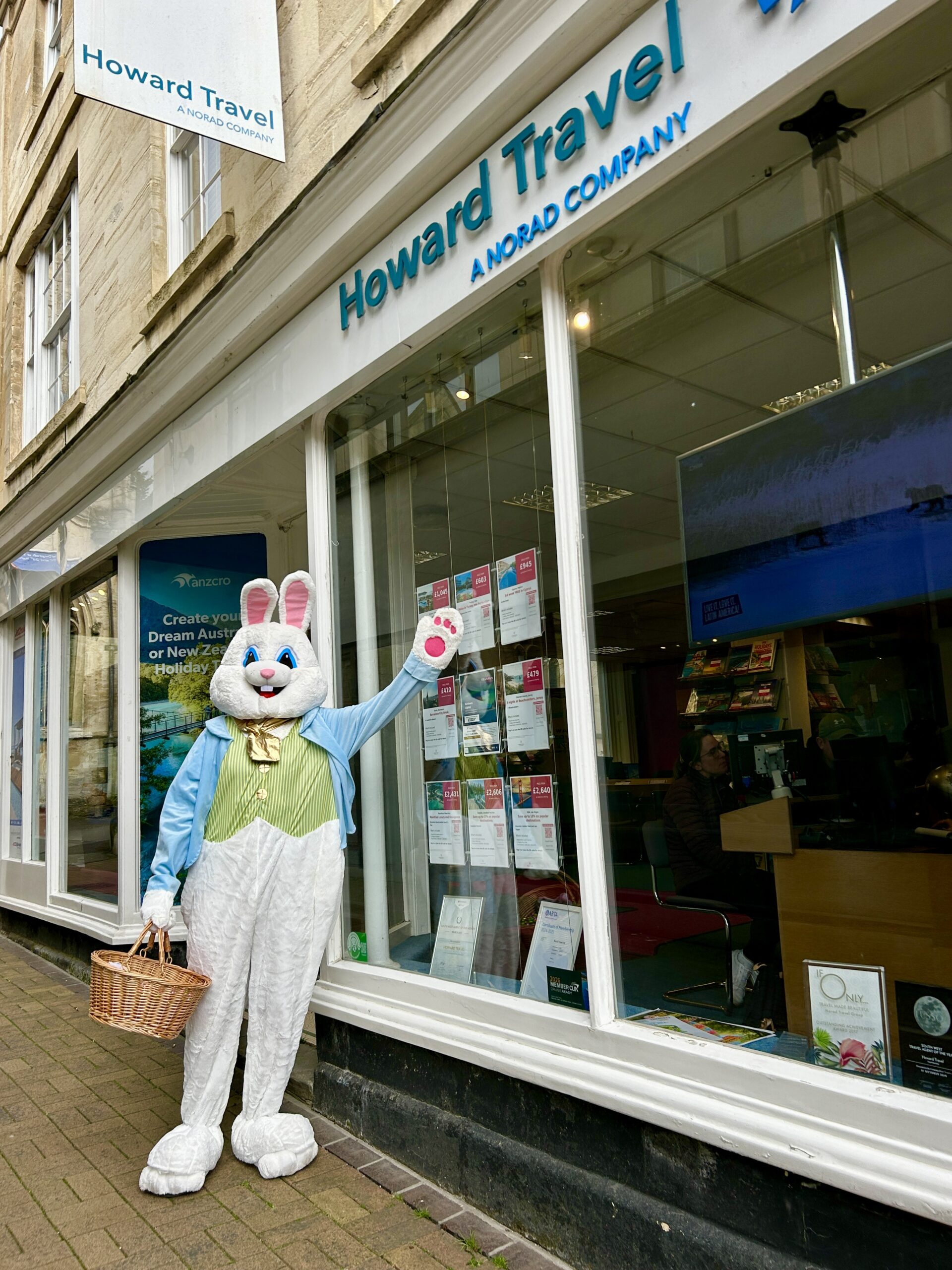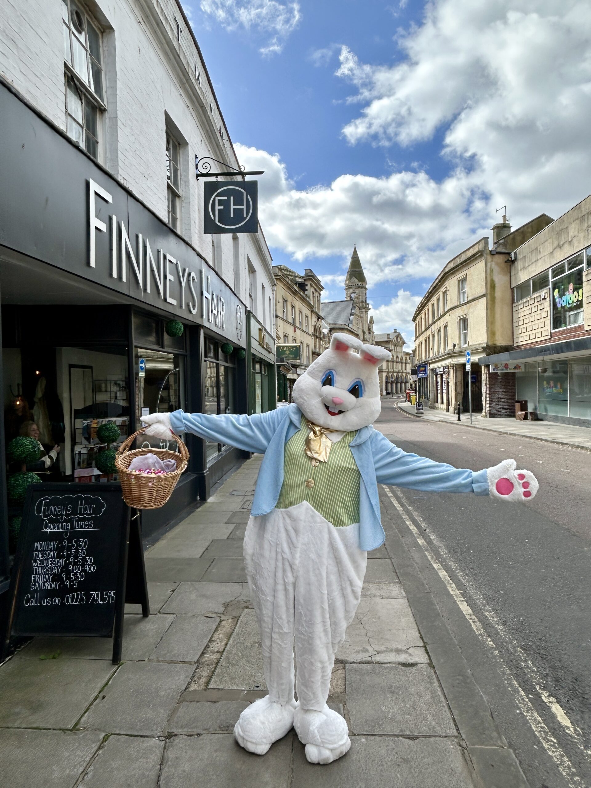 He visited the 9 venues on the trail displaying Billy Bunny trail clue posters and hopped into otherTrowbridge Chamber members around the town centre.