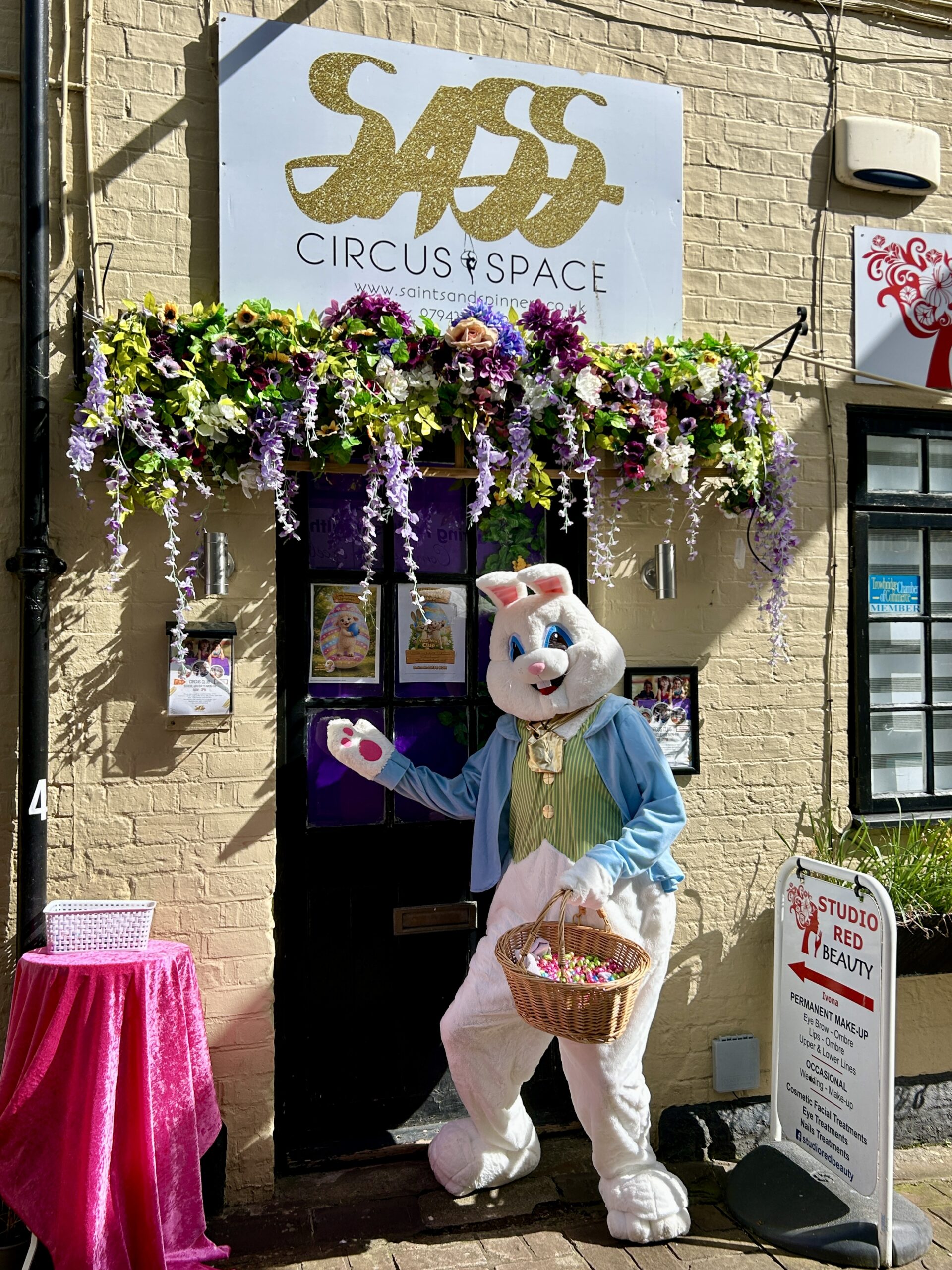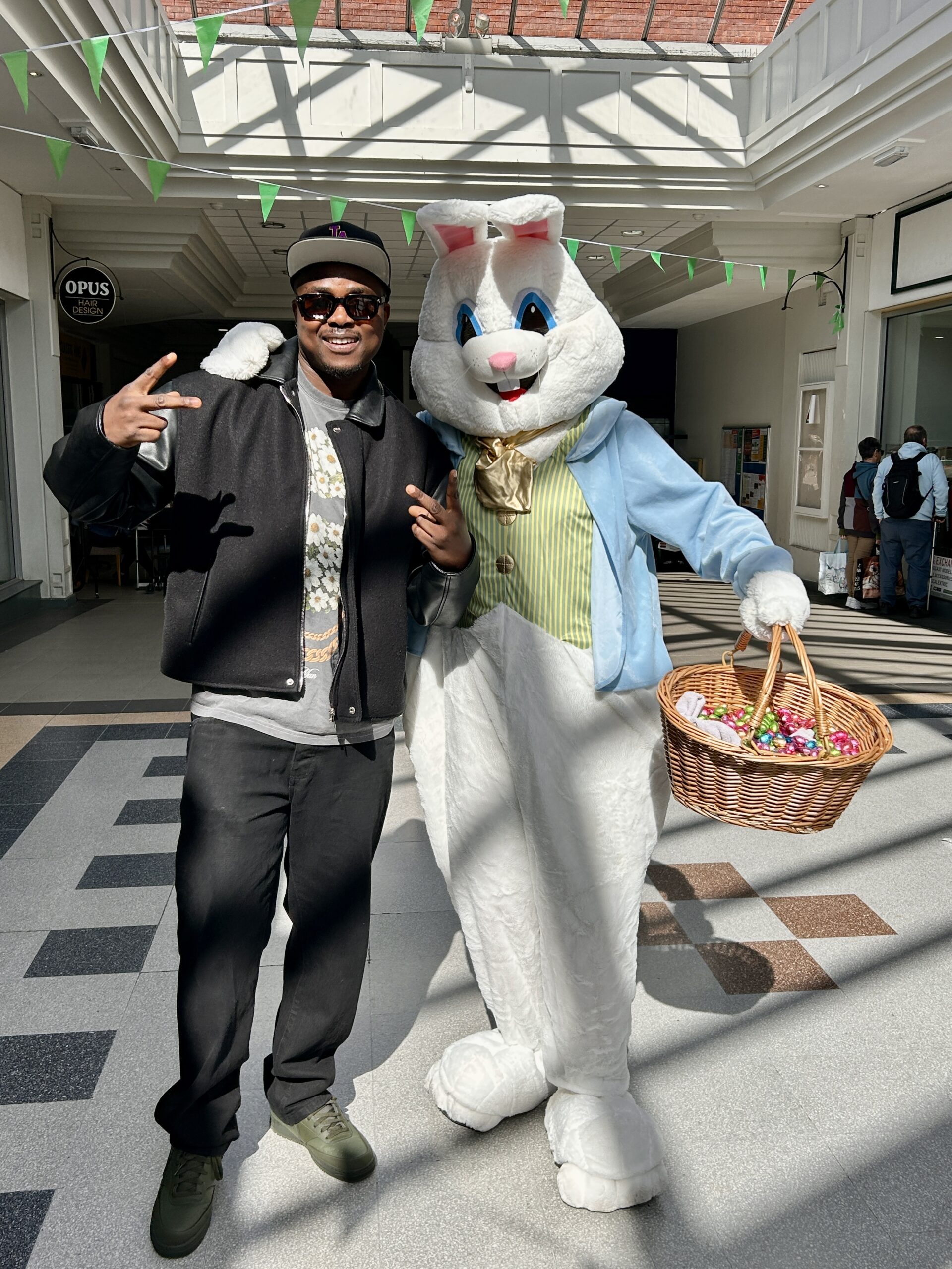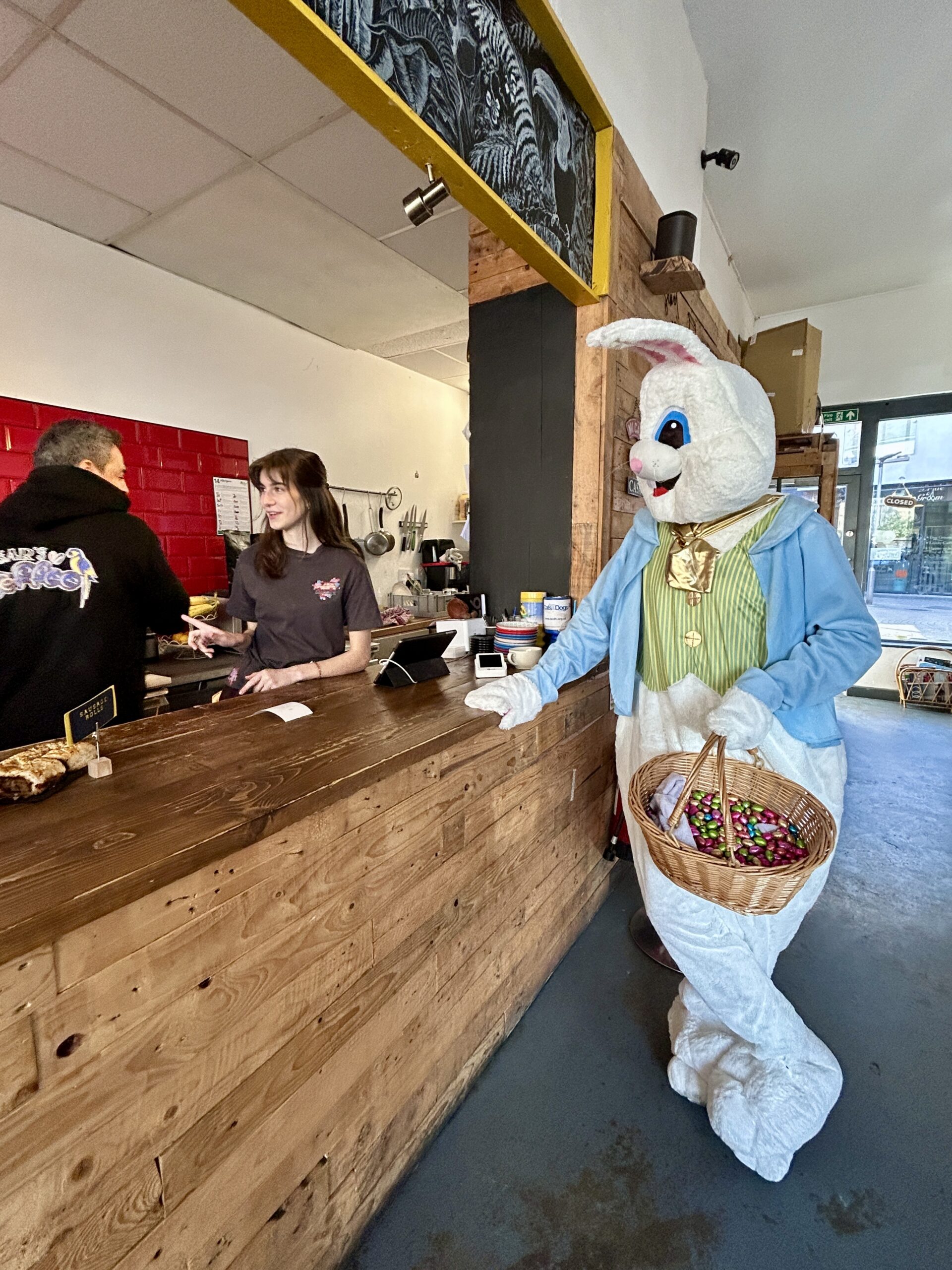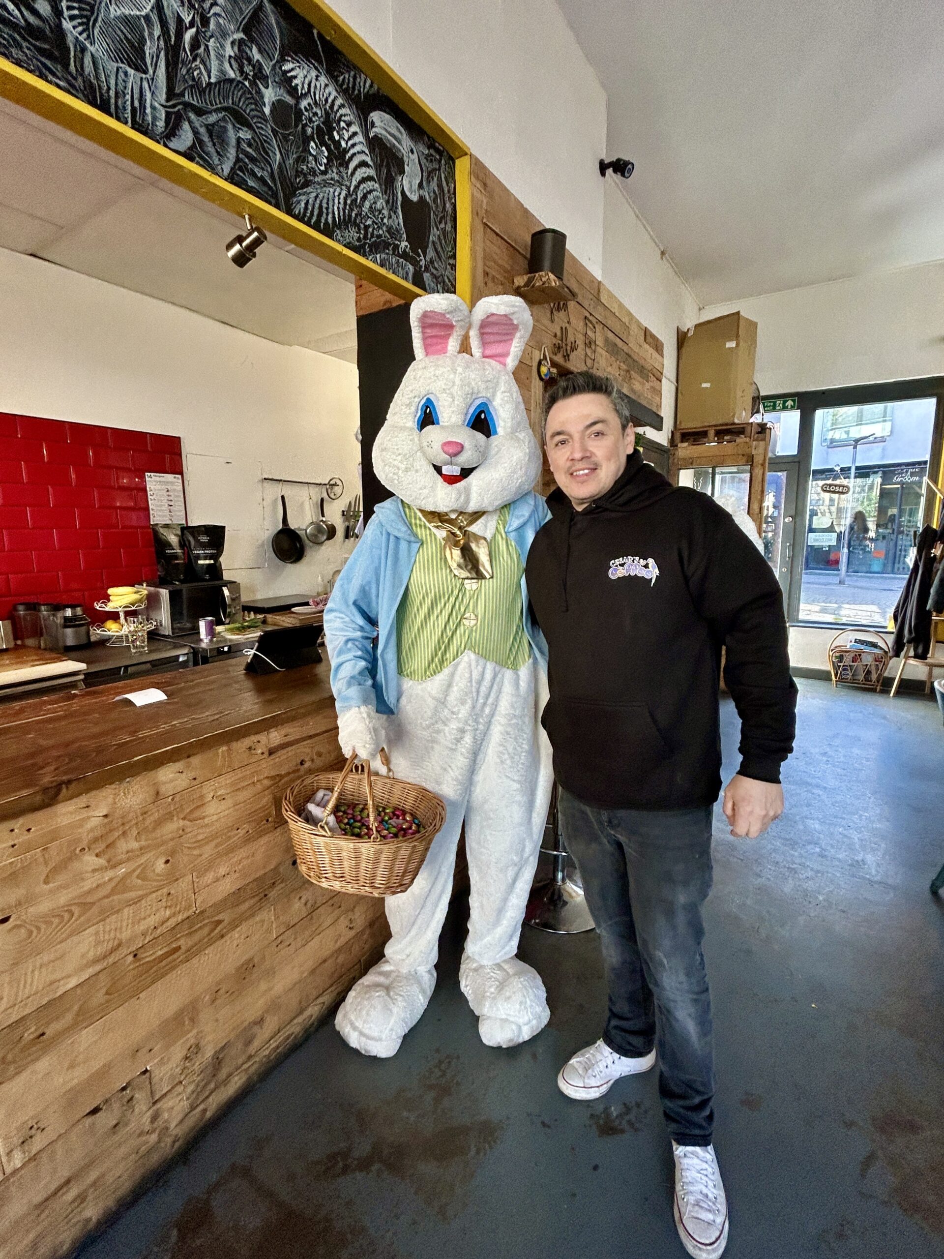 He visited the 9 venues on the trail displaying Billy Bunny trail clue posters and hopped into otherTrowbridge Chamber members around the town centre.
