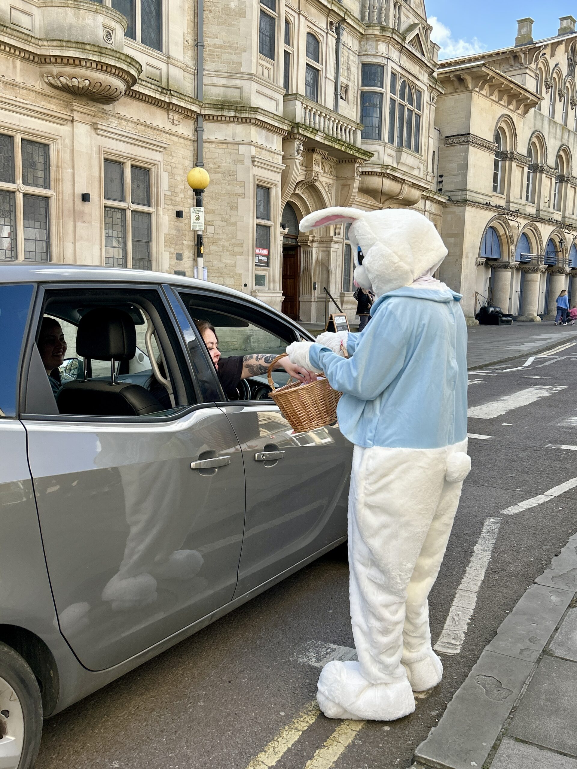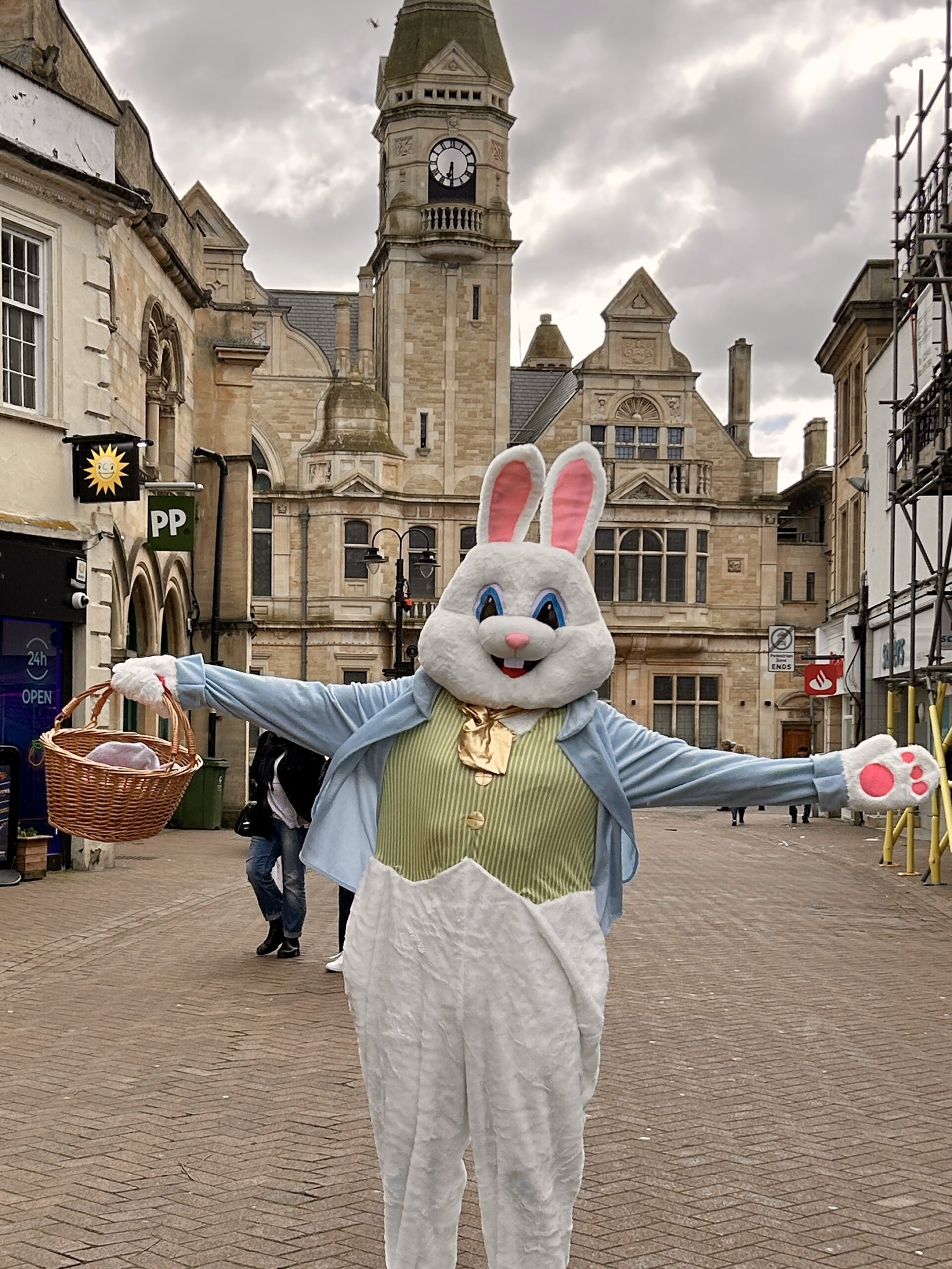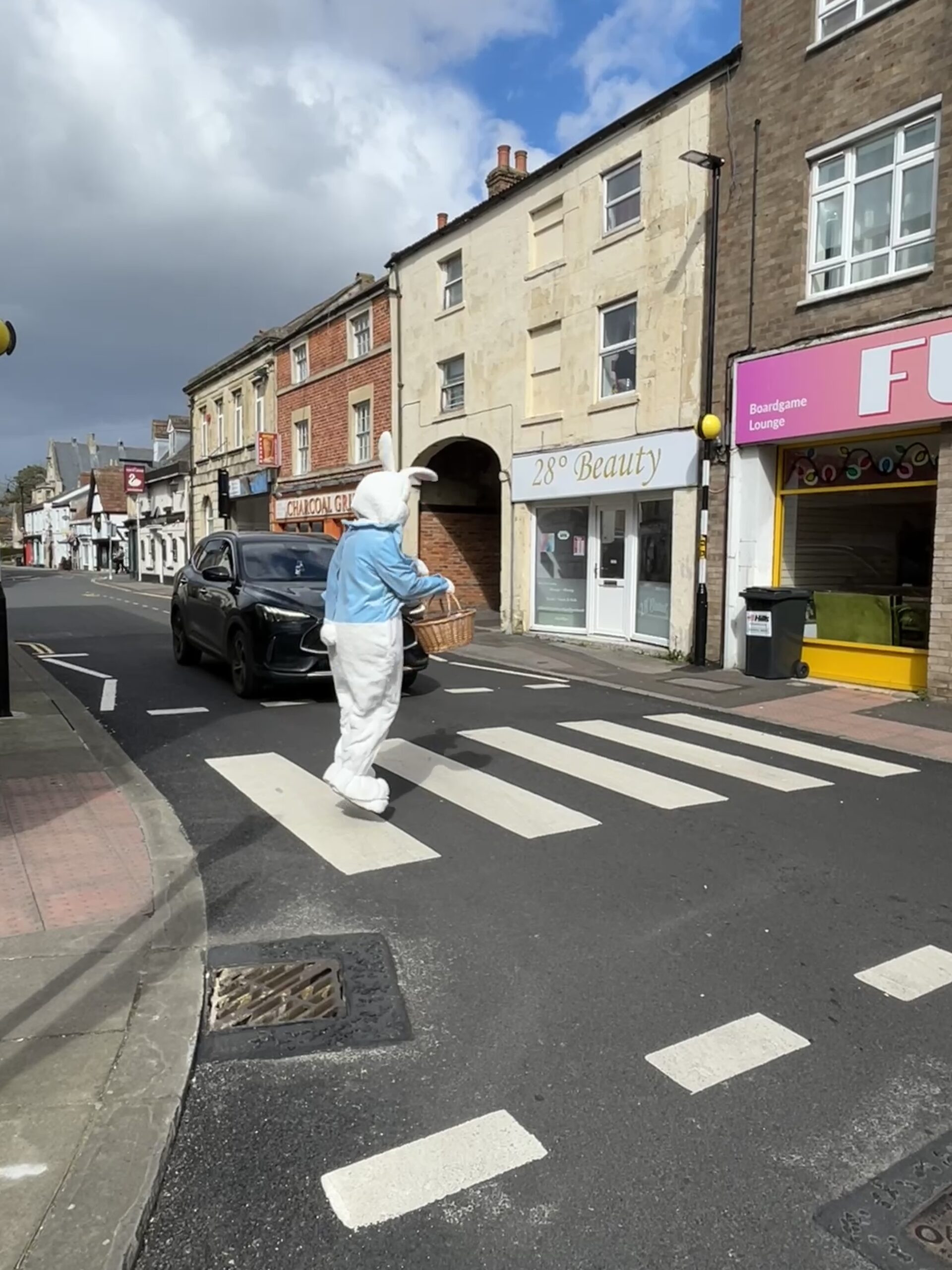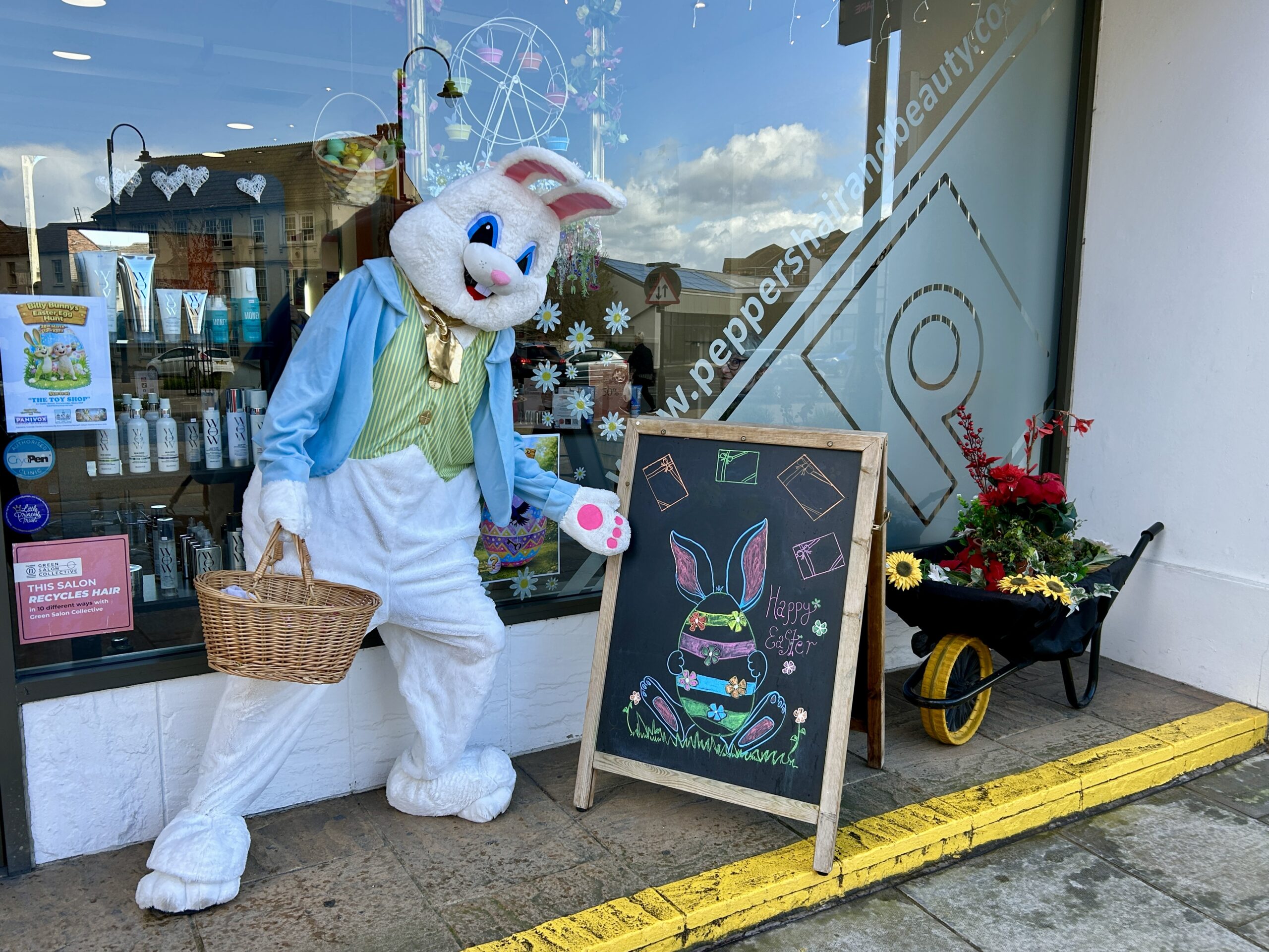 A giant Easter bunny hopped into Trowbridge on Saturday to promote the Chamber’s new digital Easter Bunny trail, which is taking place over the Easter holidays, from Saturday 28th March to Sunday 12th April.