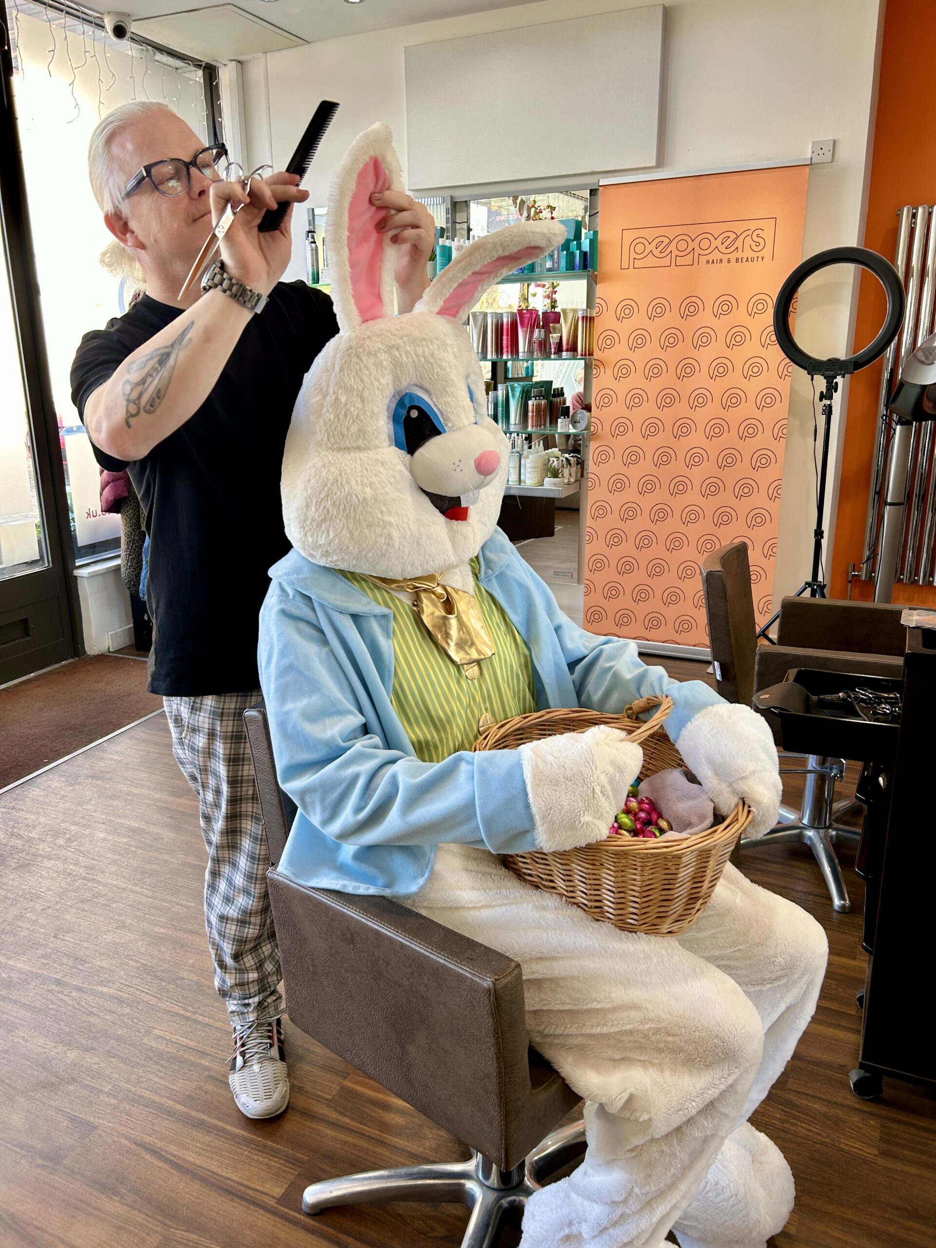Bunny was treated to a short back and sides at Peppers Hair & Beauty – the first time they’ve trimmed a bunny’s ears!