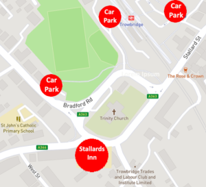 TRAIN: Trowbridge station – approx 5 minutes walk to Stallards Inn