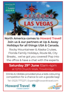 Join independent Trowbridge travel agent Howard Travel and Up & Away Travel to find out more about USA and Canada travel experiences, from 10am-4pm on Saturday 29th June.